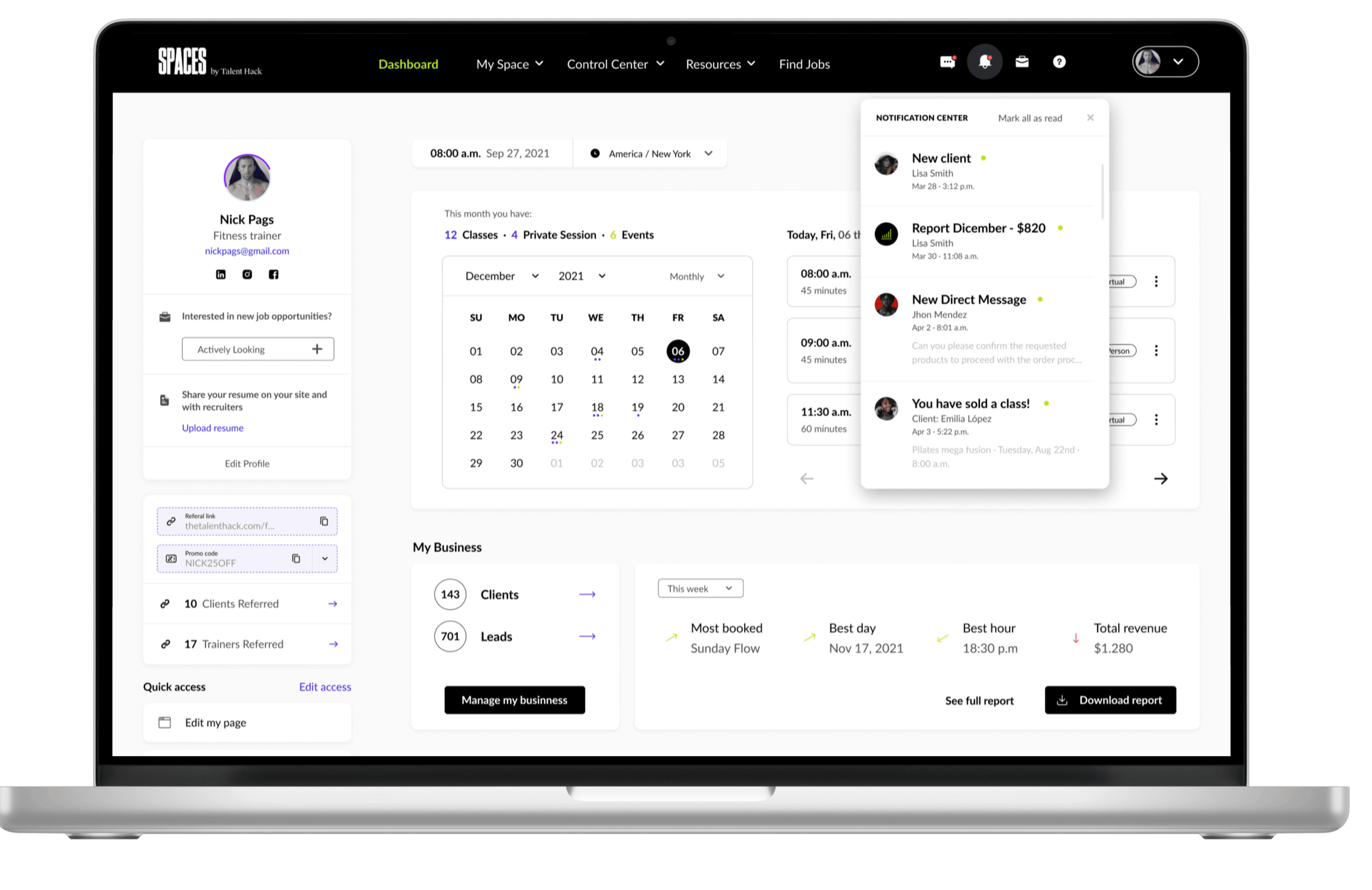 Talent Hack was a tech startup focused on connecting fitness and wellness professionals with their audiences through a digital platform during the pandemic, a time when most fitness studios faced operational restrictions.
