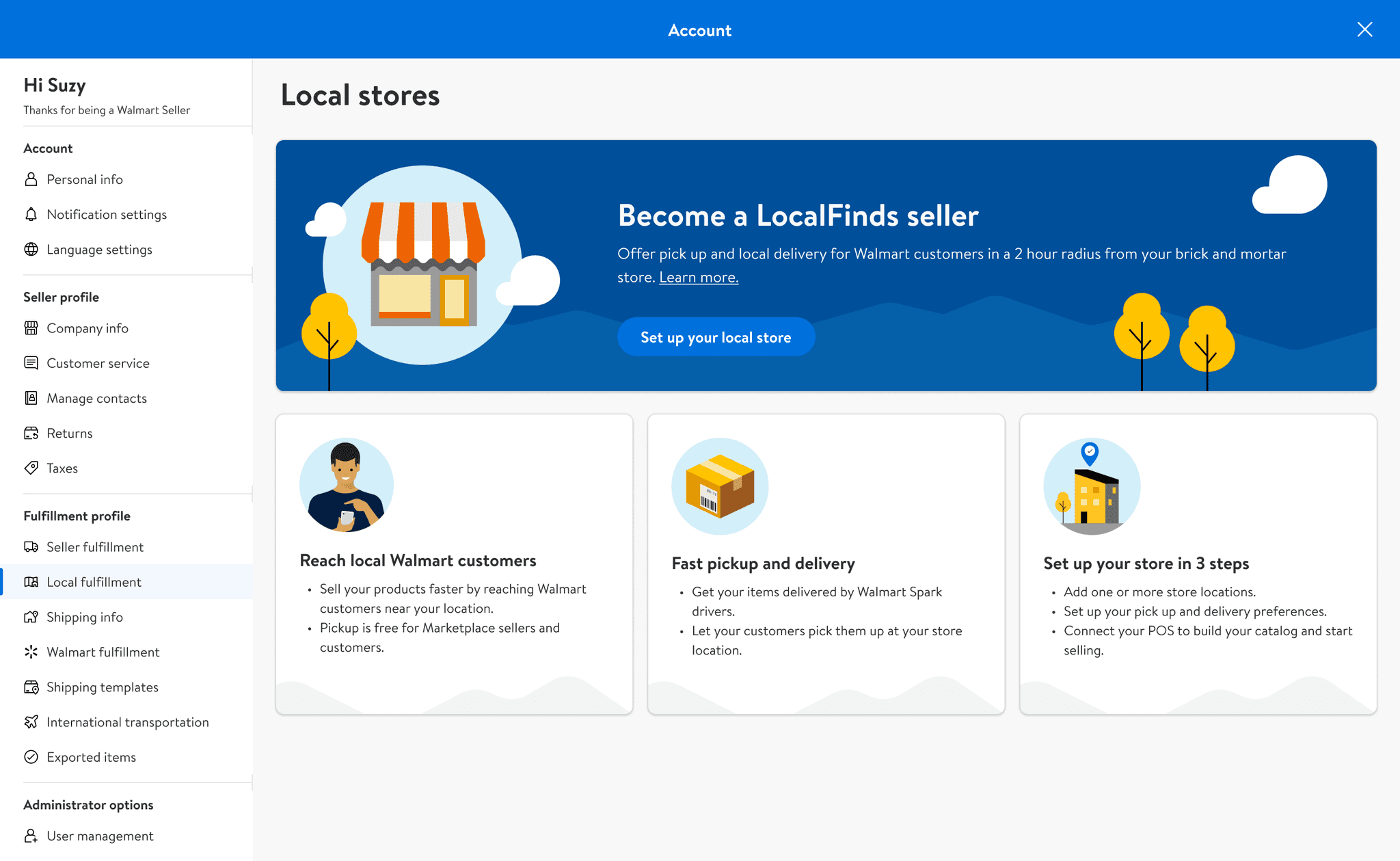 LocalFinds is a layer across Walmart Marketplace, that’s why connecting with design teams and other dependencies was the most important challenge and it was essential to guarantee seamless integration for LocalFinds sellers E2E experience: Onboarding, store setup, returns, marketing, payments. I partnered up with other designers and product managers to facilitate integration.