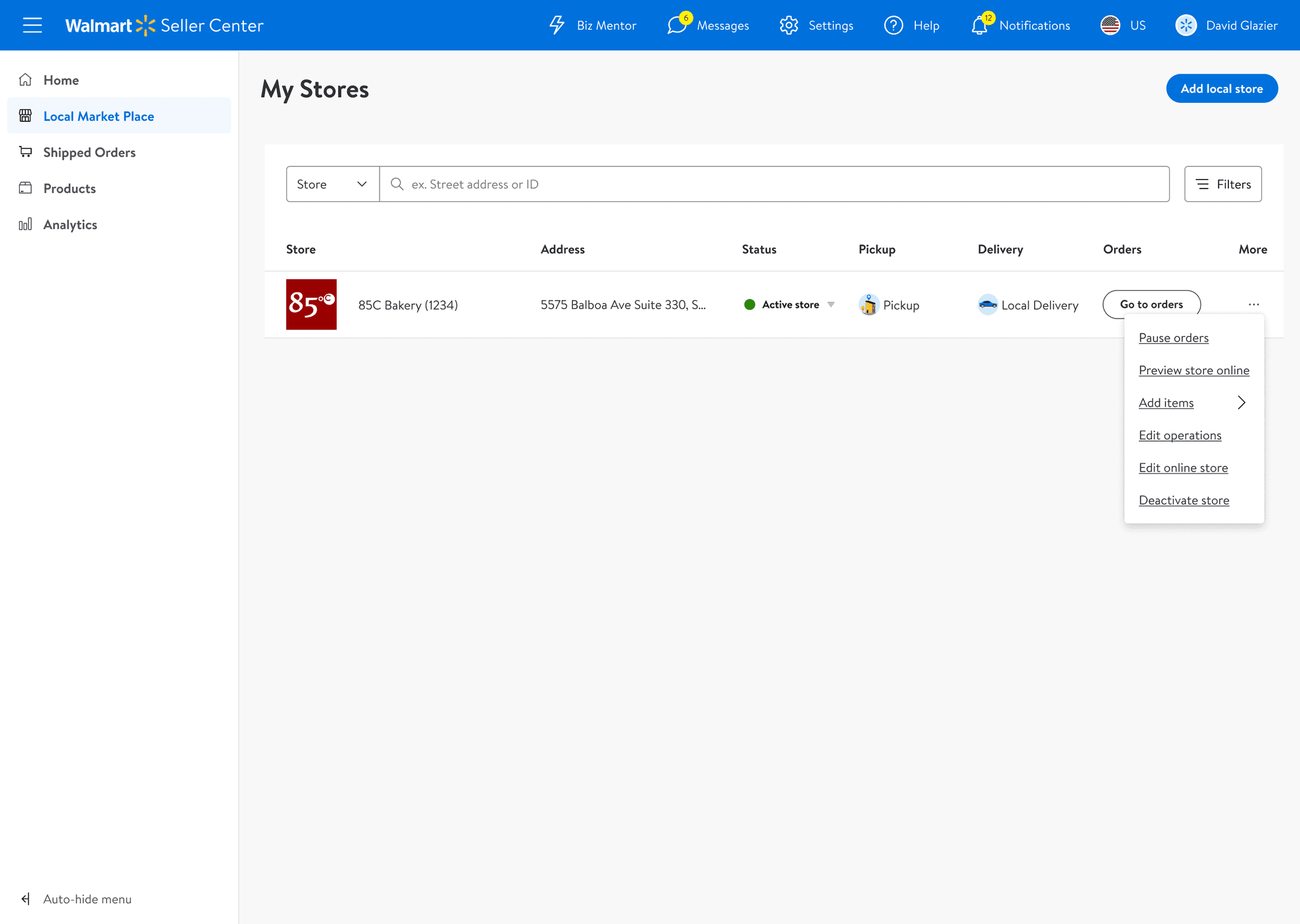 A LocalFinds account can have multiple stores operating from different locations while a regular shipping account is a single store front in Walmart marketplace, so we needed to adapt the architecture to support each individual store management.